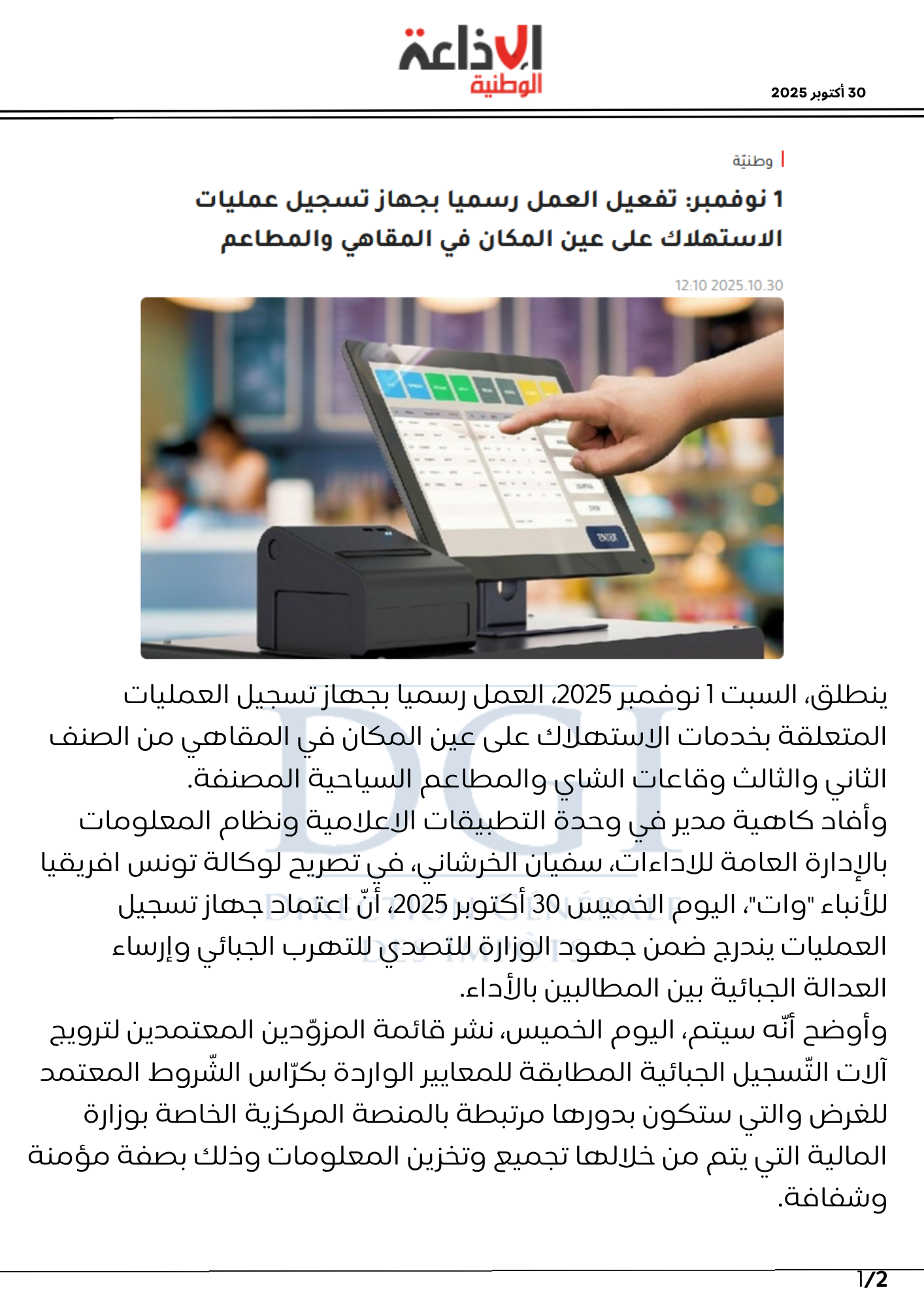 1 novembre: entrée en vigueur de la caisse enregistreuse pour les services de consommation sur place