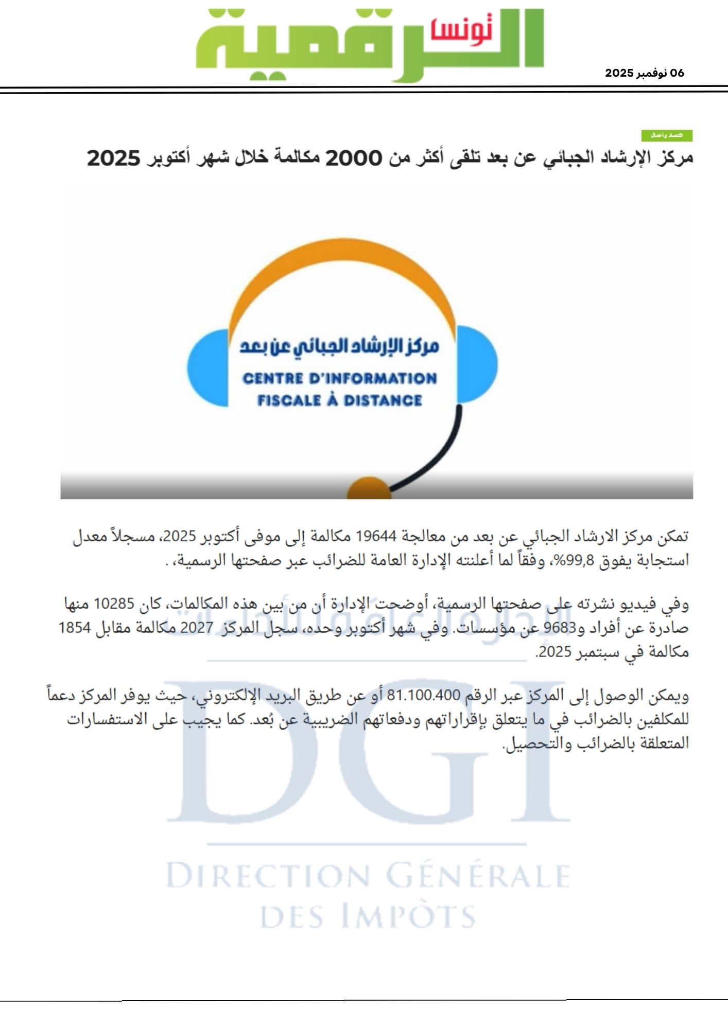 Finances: Le Centre d’information fiscale à distance a reçu plus de 2000 appels en octobre 2025